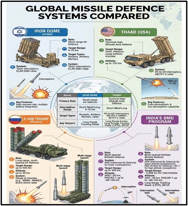 - Layered Integration: It combines the long-range S-400 Triumf (re-christened Sudarshan Chakra in India) and the upcoming Project Kusha (indigenous long-range and short-range) surface to air missiles.