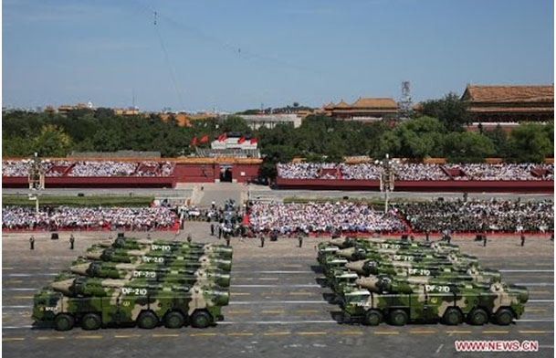 The procession opened with more than 10,000 troops. Formations on parade included ground, naval and aerial drones, strategic missiles, and a cyber space combat force. China a leader in hypersonic missiles showed its latest Yingi series described as ‘a strategic hammer.’ The new variant of the two stage ICBM DF-5C was also on display.