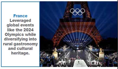France remains the world’s most visited country, receiving around 100 million international tourists in 2024. After COVID-19, the country revitalized tourism through event-led marketing and destination diversification. Major global events such as the 2024 Paris Olympics were leveraged as catalysts to revive visitor confidence and stimulate demand. France responded to the pandemic with a comprehensive tourism recovery strategy focused on sustainability, digital transformation, and destination diversification. The French government launched programmes encouraging domestic and regional tourism while international travel slowly resumed. Marketing campaigns emphasized cultural heritage, gastronomy, and rural experiences to reduce overcrowding in major cities such as Paris. Investments were directed toward sustainable tourism infrastructure, including eco-friendly accommodation and improved rail connectivity. France also upgraded workforce training through hospitality education initiatives and digital skills programmes. Tourism authorities promoted lesser-known regions such as Provence and Normandy to encourage longer stays and wider regional economic benefits. Through coordinated government-industry partnerships and strong branding campaigns, France successfully strengthened its tourism image as a safe, high-quality, and sustainable destination.
