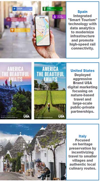 • Digital marketing campaigns, sustainability initiatives, and new destination branding strategies were introduced to attract international visitors once travel resumed.