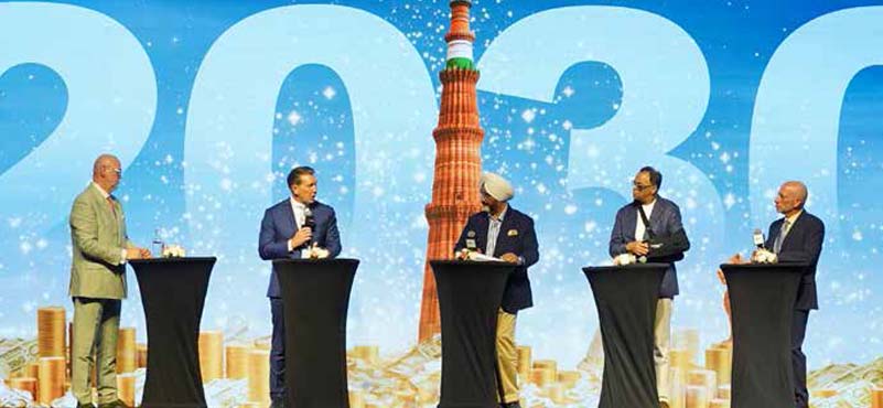 Presenting a panel at HVS ANAROCK HOPE 2026, featuring Alan Watts, President, Asia Pacific, Hilton; Dimitris Manikis, President for Europe, Middle East, Eurasia and Africa (EMEA), Wyndham Hotels & Resorts; Rajeev Menon, President, Asia Pacific (excluding China), Marriott International and Ron Pohl, President, WorldHotels & President, International Operations, BWH Hotels. The panel was moderated by Mandeep Lamba, President & CEO (South Asia).