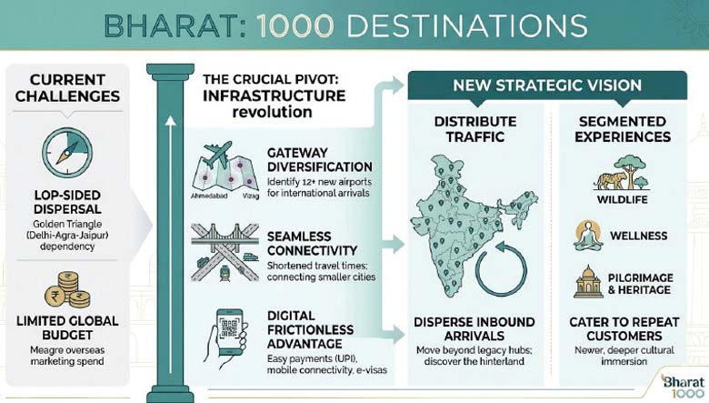 India’s dispersal of incoming tourists has remained lopsided, or one sided. Numerous tracts have yet to see the volumes they should have.