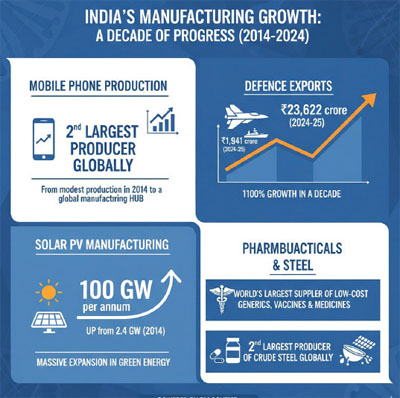 At the broad sectoral level, India’s manufacturing sector has expanded at an average pace of 5.9 per cent over the past decade. Recognising the sector’s critical role in generating employment and in unlocking the nation’s export potential, the government has introduced a series of reforms to revitalise the manufacturing sector.