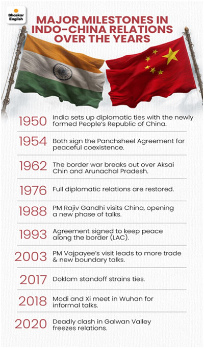 The reset in India – China relations since October 2024 after the violent clash at Galwan is not something unusual / unprecedented or accelerated by Trump’s anti India push. The two countries sharing a 3488 kilometres of disputed borders have a history of standoffs and clashes, generally restricted by use of less lethal weapons. These have been interspersed by relative peace through agreements, confidence building measures and military talks. The 1954 Panchsheel Agreement, restoration of diplomatic relations in 1976 after the border war, agreements in 1993, 1996 and more recently after the 2017 Doklam standoff with summits at Wuhan and Mamallapuram and after 2020 clash are examples. However, enhanced troops continue to remain deployed as on date. The tariff threat of US has found common grounds of solidarity.