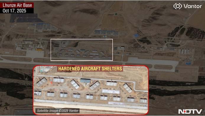 Satellite imagery confirms 36 hardened aircraft shelters at Lhunze, along with underground missile storage facilities overlooking the Chumbi Valley. The pattern suggests a deliberate shift toward concealed, high-readiness deployments forces that can be activated without overt mobilisation, maintaining ambiguity and surprise.