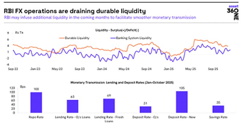 Despite favourable macro settings, the risks of sticky food inflation due to supply shocks, oil price spikes amid global geopolitical tensions, currency volatility if global risk sentiment weakens, high deposit competition, which could delay transmission, and asset-price inflation in equities or real estate if liquidity becomes excessive persist. These risks justify the RBI’s eternal inflationary vigil.