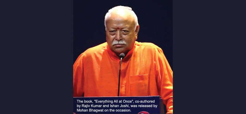 Mohan Bhagwat in conversation, on the occasion of the book launch. Rooted in the soil of India, the RSS supremo is confident that we will have to mix modern day narratives with our own deep driven solutions over time. Blending the two, the materialistic with the spiritual, keeping body and mind and soul together, we will show the way to the world. This conversation, delivered in chaste Hindi, has been translated in house. Discrepancies, if any, are regretted and incidental, as the message is here for us to imbibe.