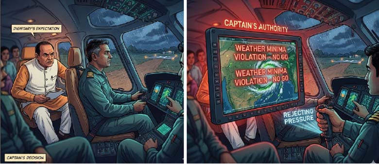 Sometimes, when weather conditions are marginal, the dignitary does not quite understand or refuses to accept the compulsions of the aircrew. A general belief is that since the aircraft has been chartered, we have full right over its utilization. The intangible factor that is often overlooked is the pressure imposed by the dignitary.